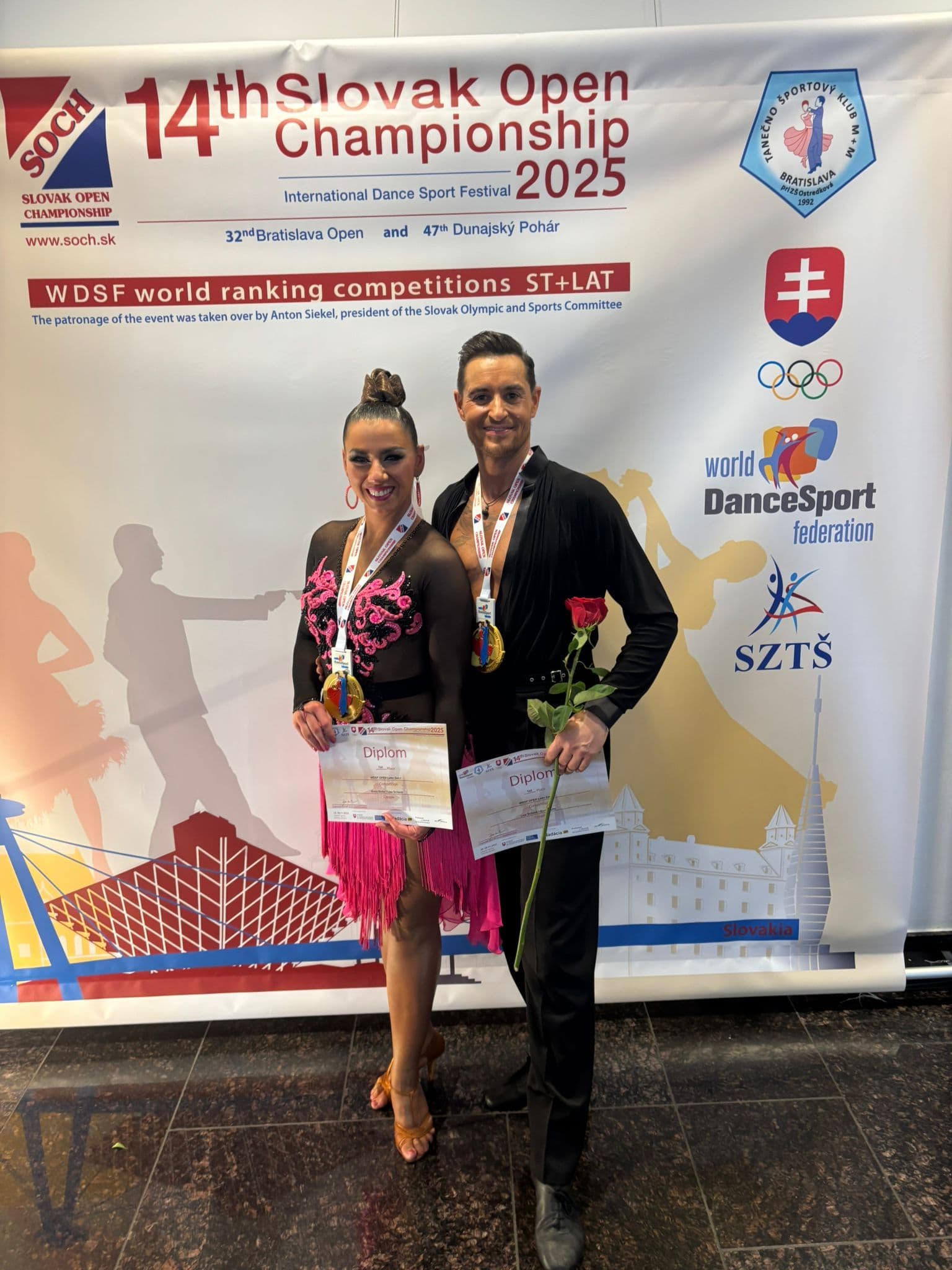 Samorin (Slowakei), 30. November 2025 — Boris Bube und Lisa Schenk sichern sich bei den WDSF Open Senior I Latin den 1. Platz unter 10 Paaren.